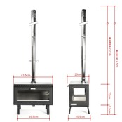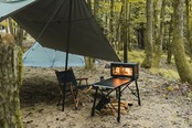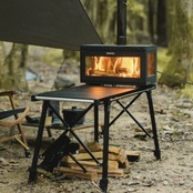 薪ストーブとして天板での調理はもちろん、天板を外すと二次燃焼構造の焚き火台としても使用でき、付属の焼き網を使えばグリル調理も楽しめる3WAYタイプ (※燃料に炭は使用できません) 。