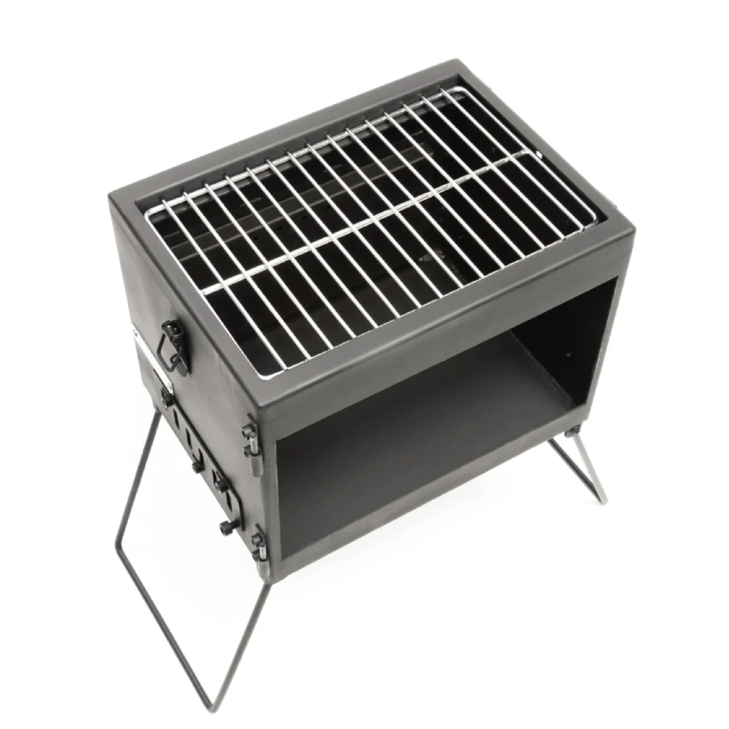 全辺30cm以下・本体重量6.7kgとコンパクトで持ち運びやすく、焚き火台とグリルの機能を兼ね備えた二次燃焼薪ストーブです。