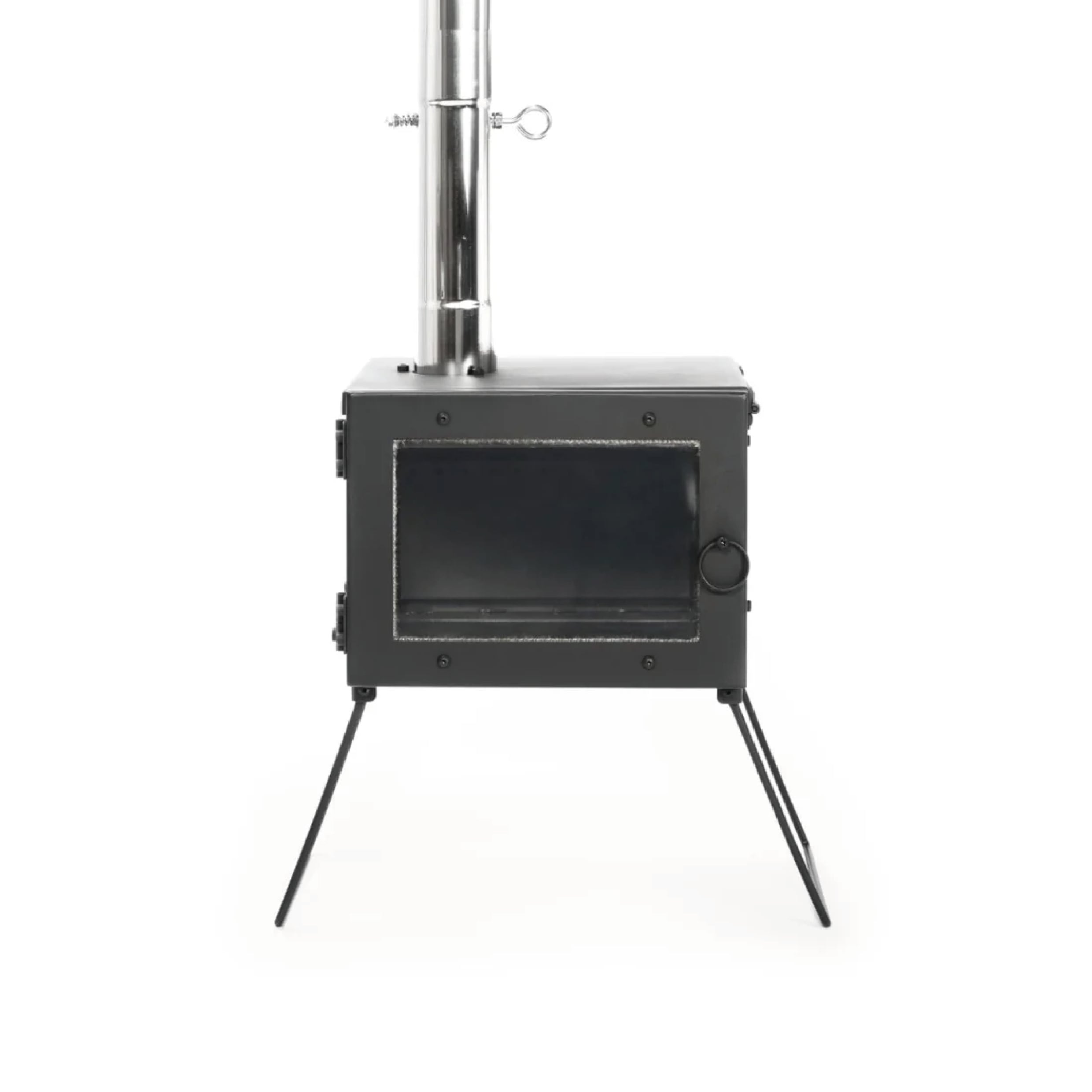 薪ストーブとして天板での調理はもちろん、天板を外すと二次燃焼構造の焚き火台としても使用でき、付属の焼き網を使えばグリル調理も楽しめる3WAYタイプ (※燃料に炭は使用できません) 。