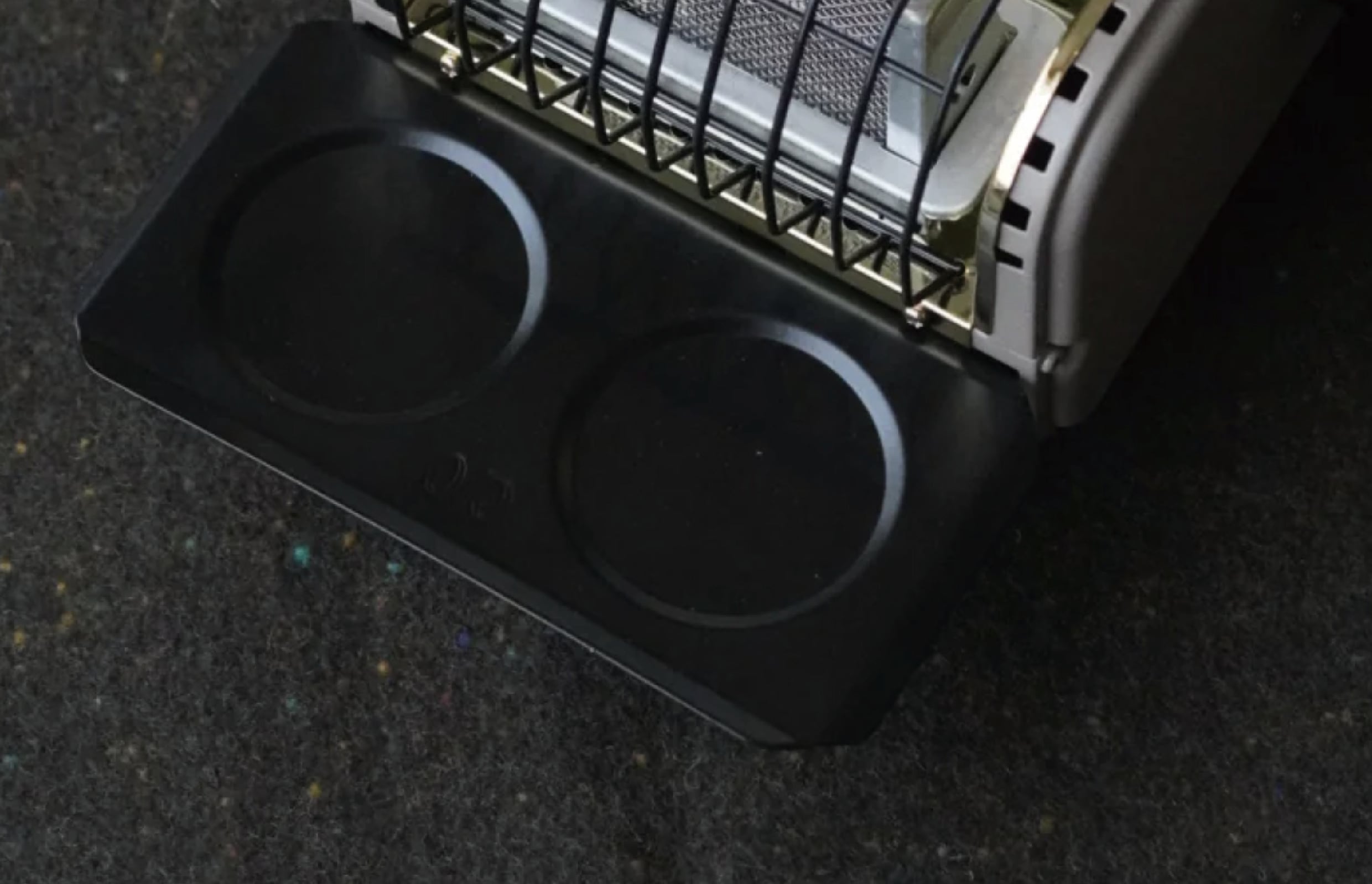 シャンクヒーター専用のドリンクホルダー。本体にひっかけて固定し、ちょっとした耐熱コップや缶製飲料を保温できます。