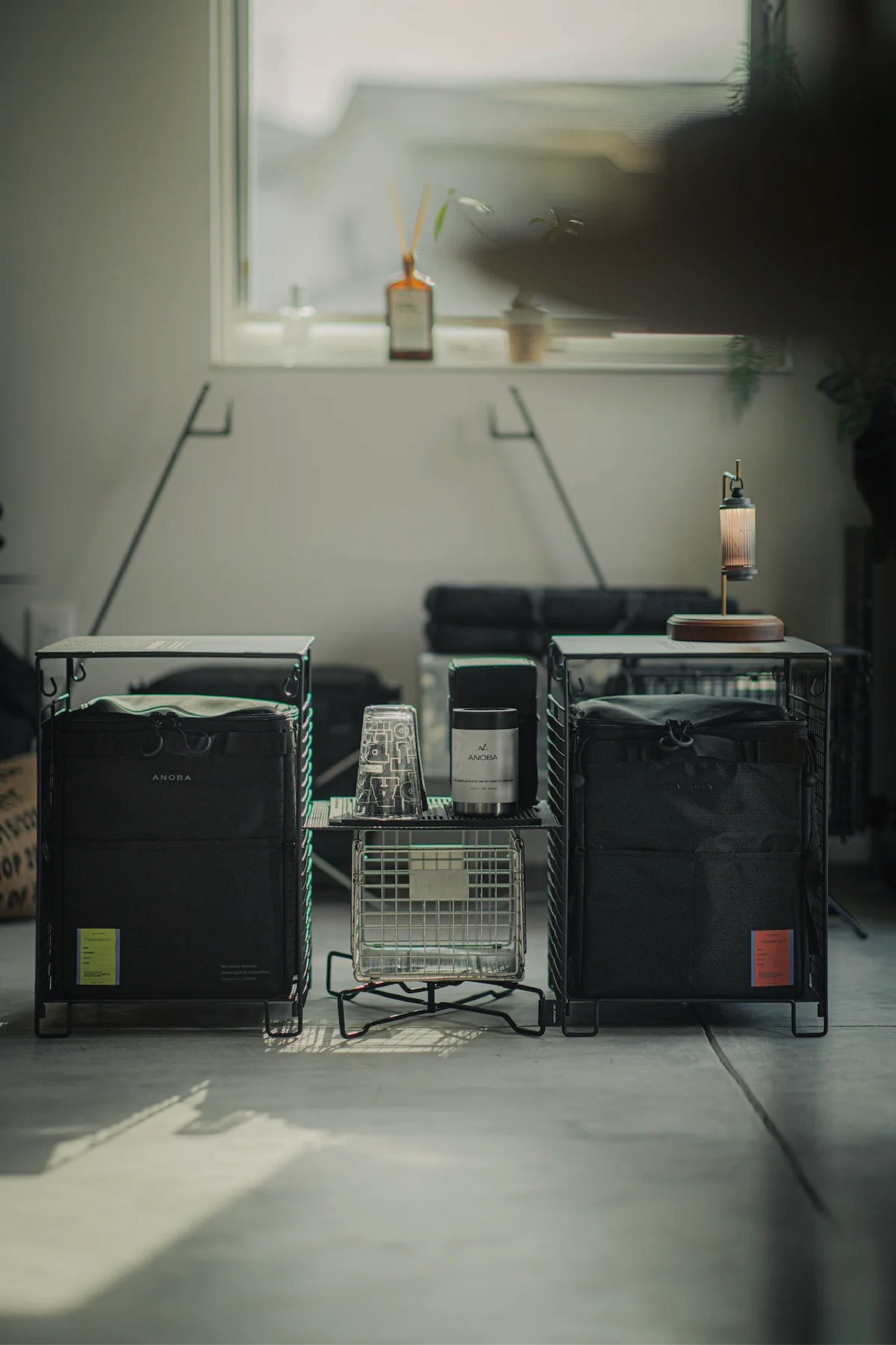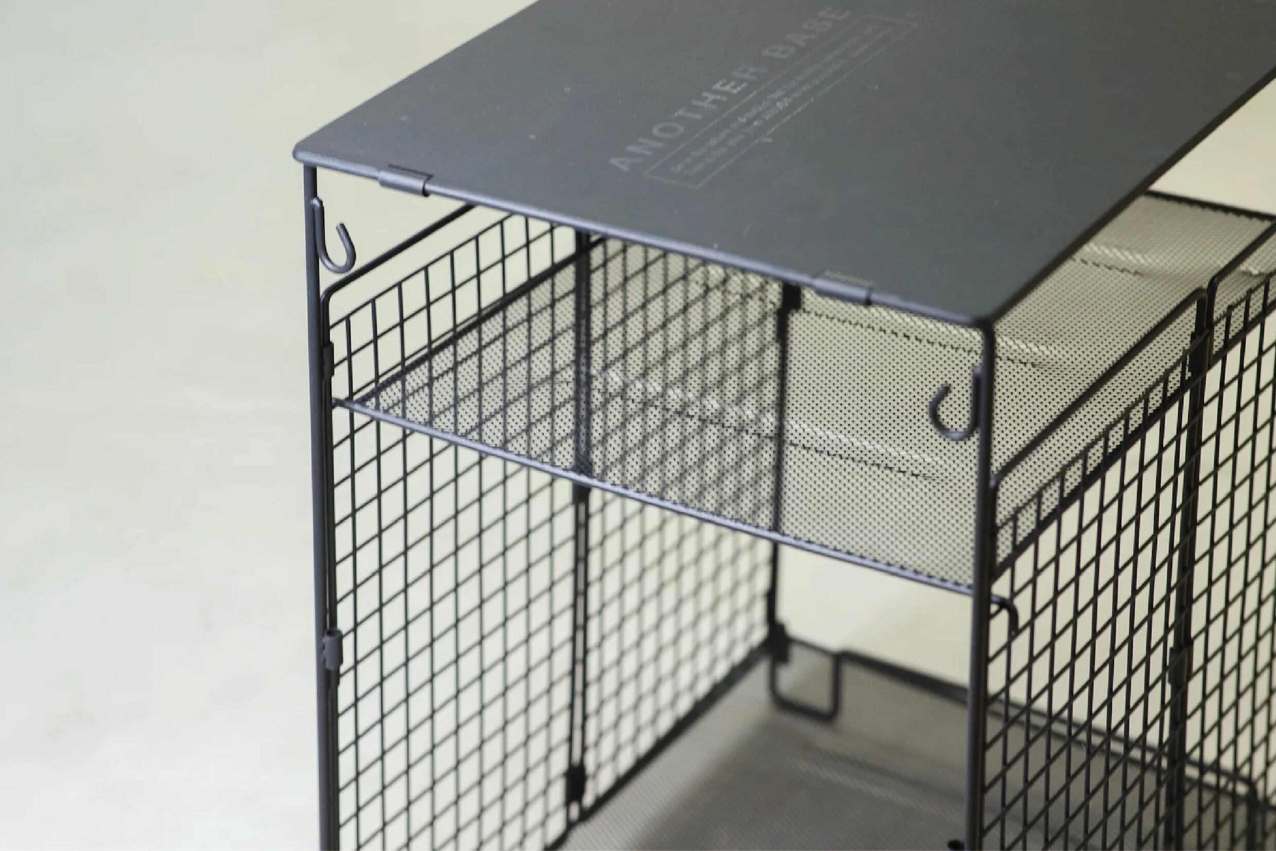 四隅には小物など必要に応じてハンギングできるフックを設置。
