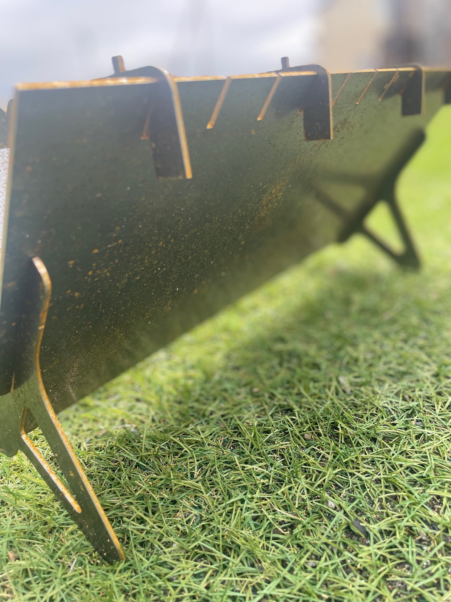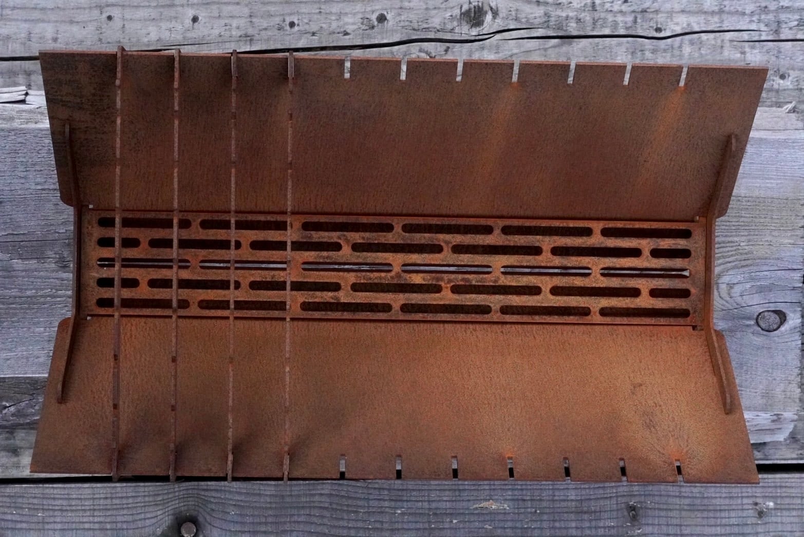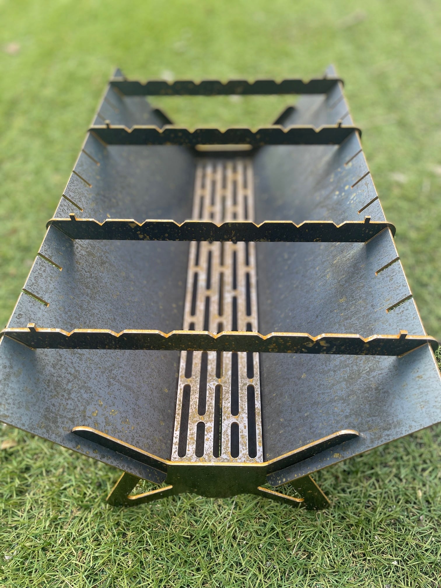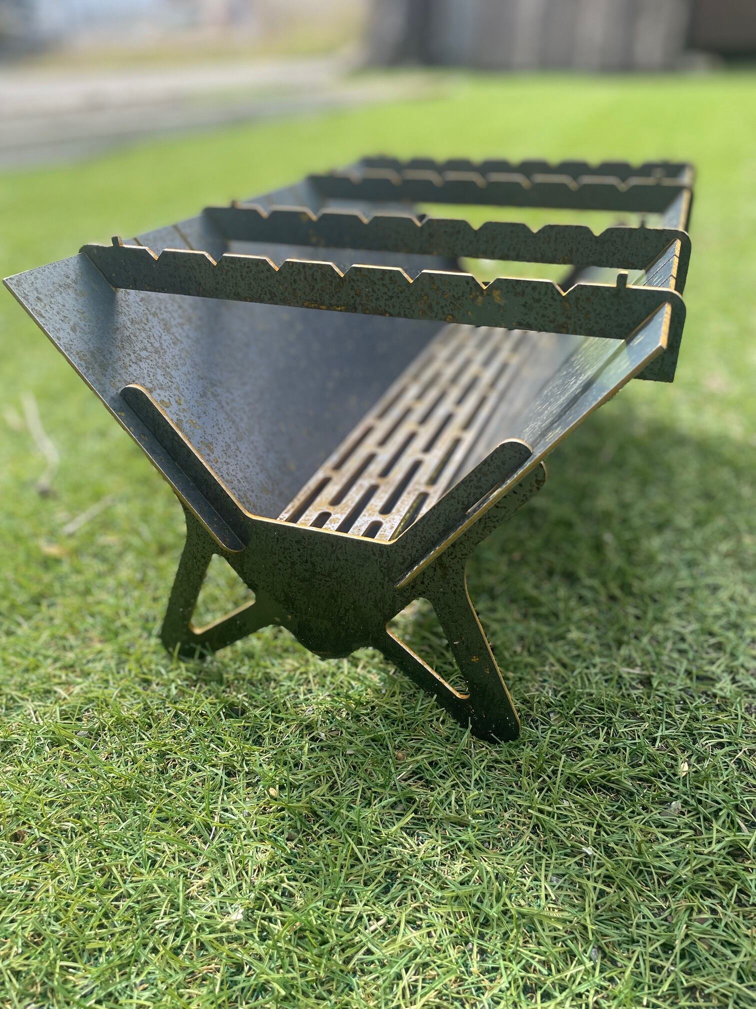 市場では見渡すと基本的にはロゴがレーザー加工で抜かれた焚き火台が主流とされていますが、無骨でシンプルなデザイン。