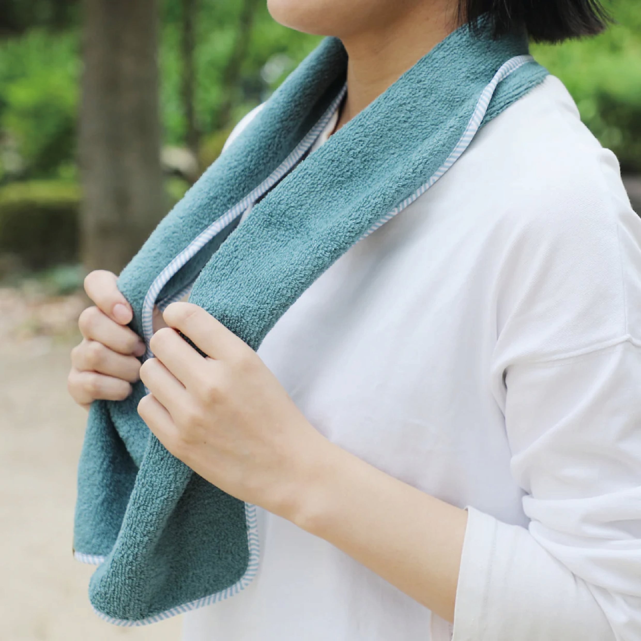 薄いから、女性の手でもしっかりタオルが絞れます。水気を絞って使う場面が多い外あそびでは、使い心地につながる大事なポイント。