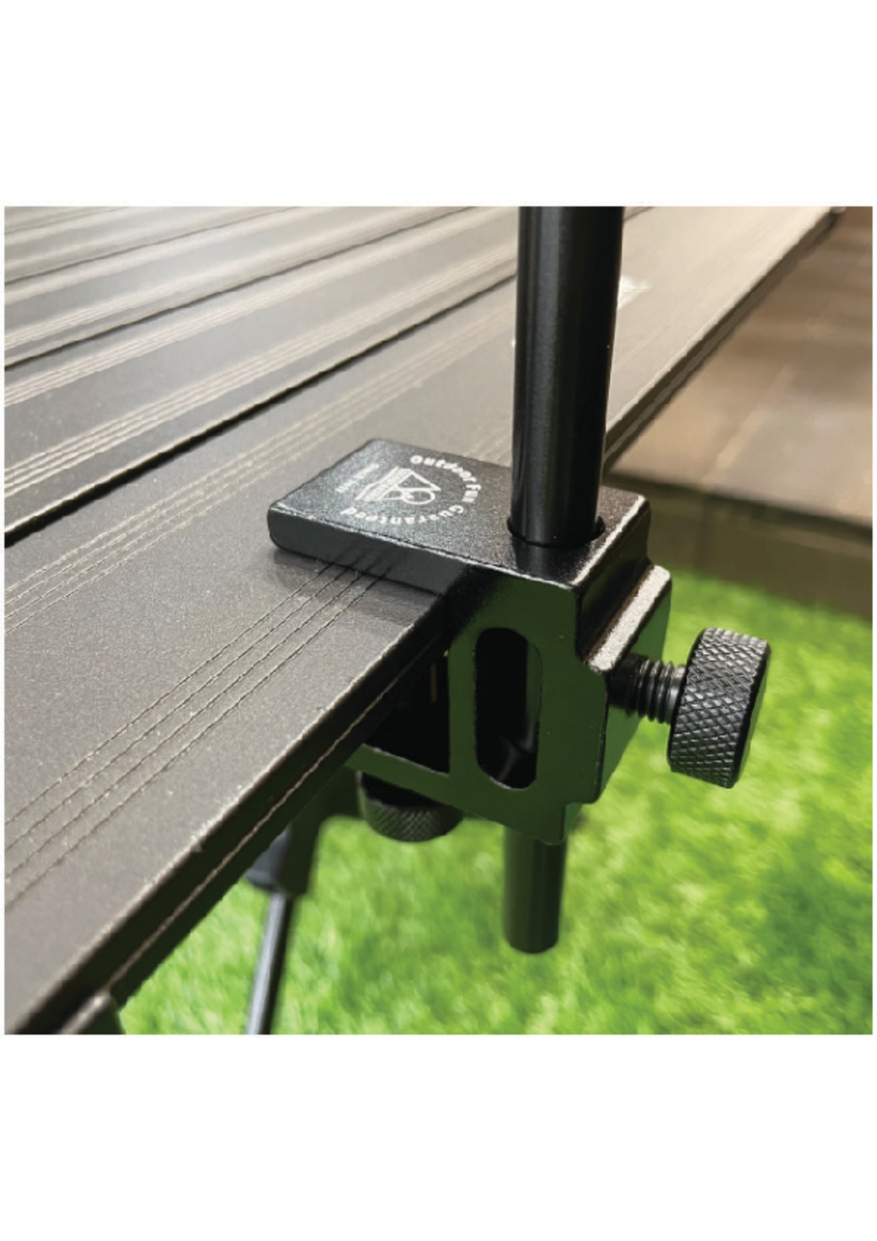 2WAY STAND2.0は、テーブルに挟んで固定、もしくは地面にペグを打ちこんで