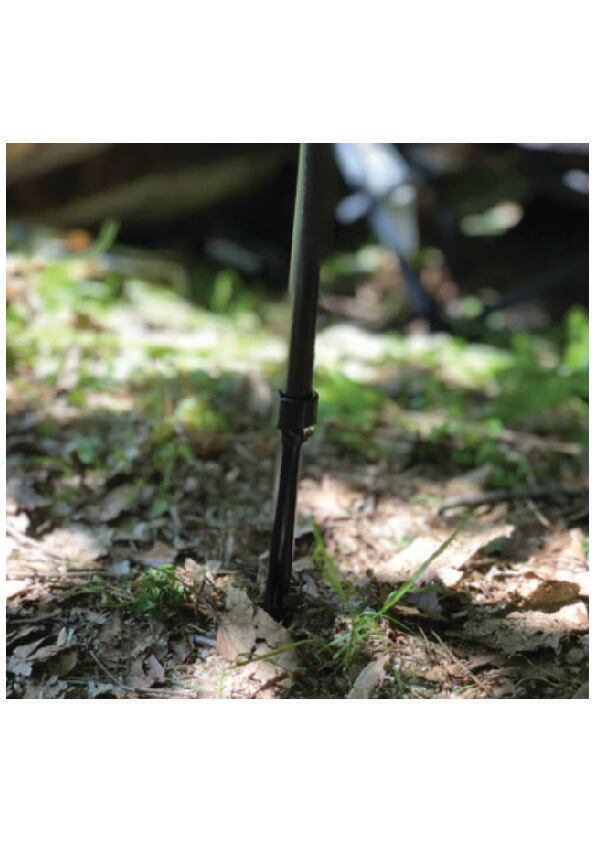 ペグで地面に固定する場合、ペグを地面に打ち込みポールとペグをつないで設置。