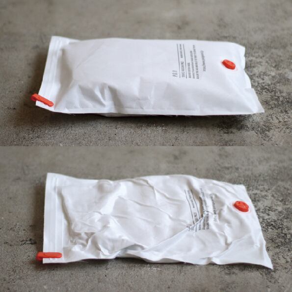 袋の上部をスライダーで閉じ、手で袋を丸めて中の空気をロック式排気弁から